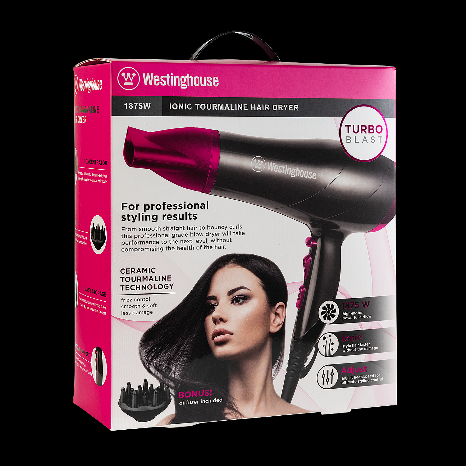 Мэргэжлийн түвшний үс засалтыг гэртээ мэдрээрэй! Westinghouse Ionic Tourmaline үсний сэнс нь дэвшилтэт технологи болон эвтэйхэн хийцийн хослол бөгөөд таны үсийг зөөлөн, цахилгаанжихгүй, гялалзсан болгож хурдан хатаана.