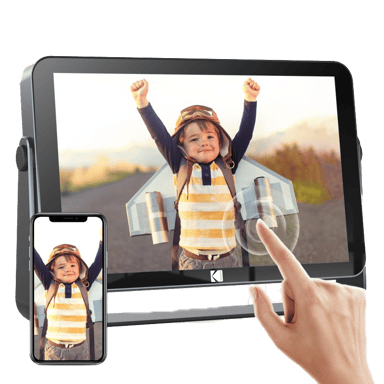 Kodak RWF-109V нь хар өнгийн матт загвартай, 1200 x 1920 пикселийн IPS мэдрэгчтэй дэлгэцээр гайхалтай харааны туршлагыг санал болгодог. Таны зургуудыг нарийвчлалтай үзэх боломжтой бөгөөд гэрэлт орчинд ч үзэхэд тохиромжтойгоор гэрэлтэлт тохируулж болно. WiFi холболт болон 32 GB дотоод санах ойтой тул амьдралынхаа бүх мөчийг хуваалцахад төгс тохирно.